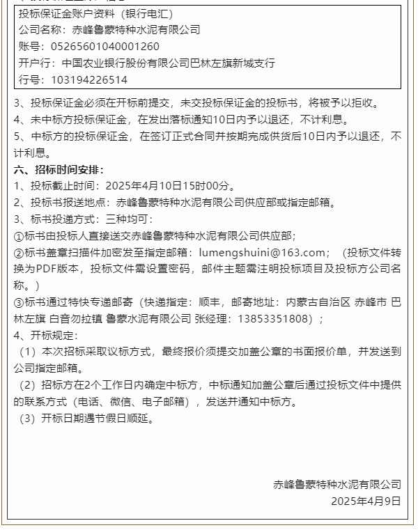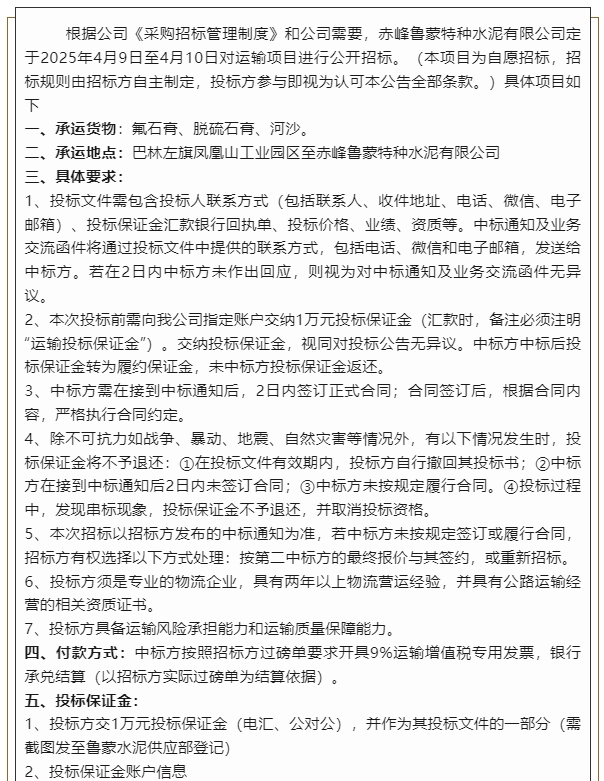 【招標(biāo)公告】魯蒙水泥