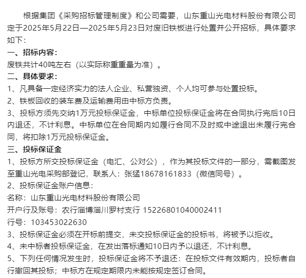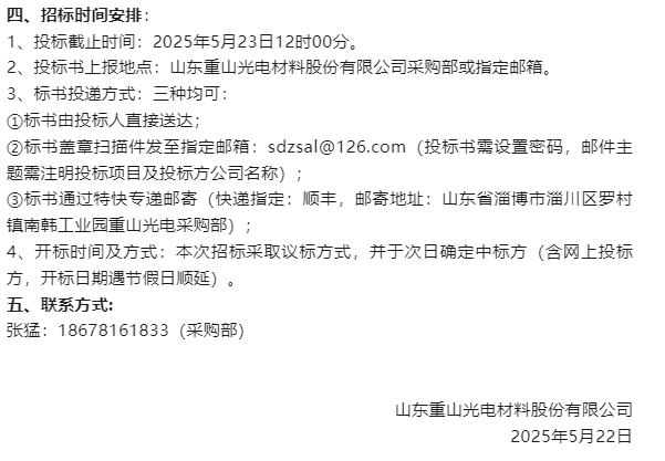 【招標(biāo)公告】重山光電