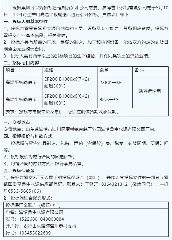 【招標(biāo)公告】魯中水泥