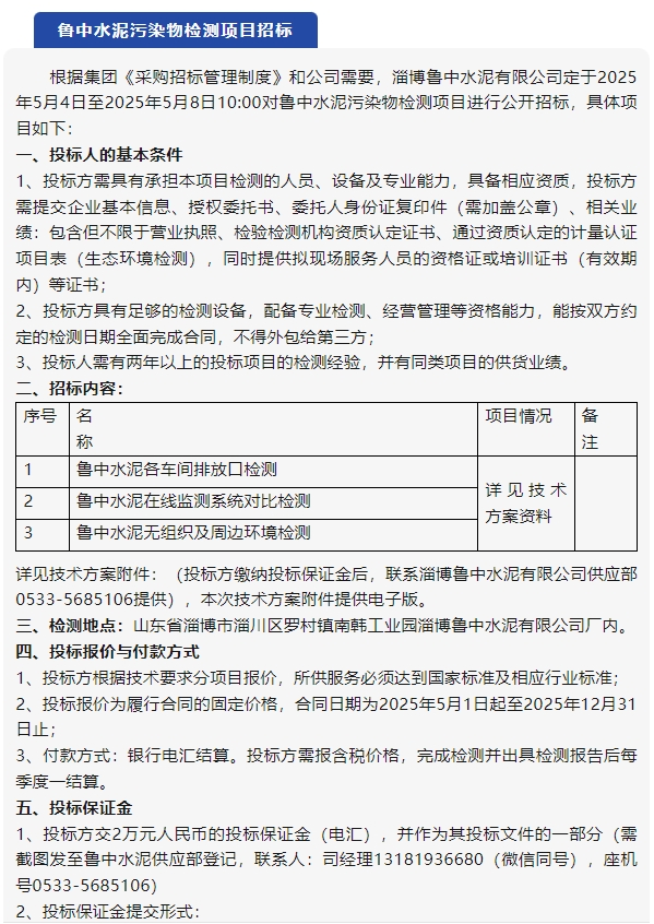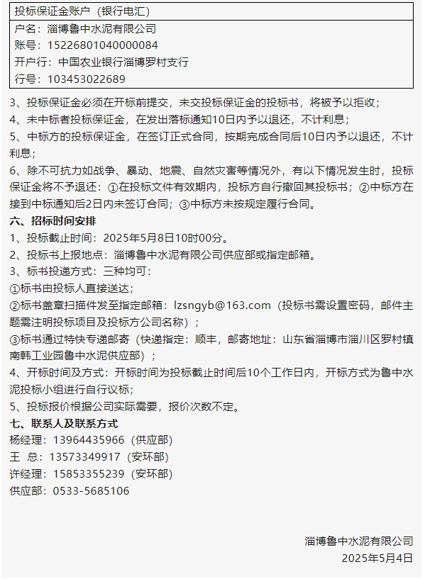 【招標(biāo)公告】魯中水泥、重山思沃瑞