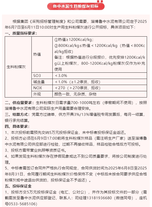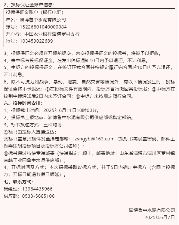 【招標(biāo)公告】魯中水泥、重山思沃瑞