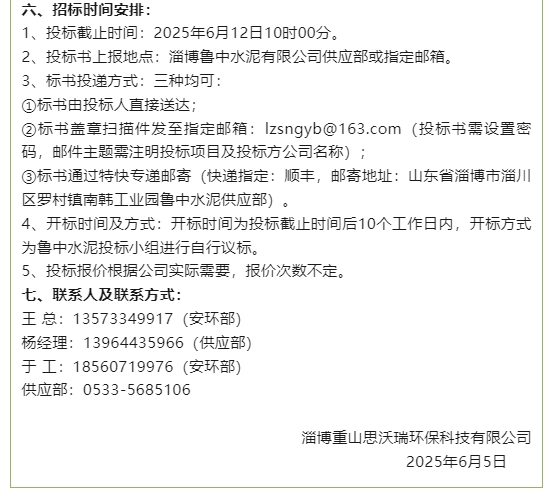 【招標(biāo)公告】魯中水泥、重山思沃瑞