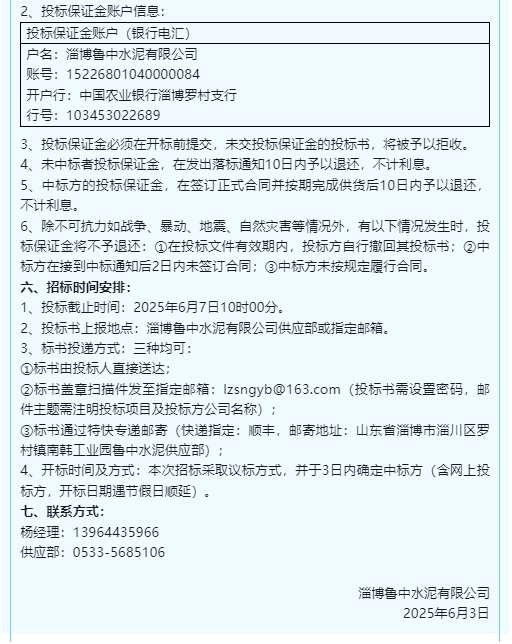【招標(biāo)公告】魯中水泥