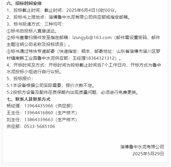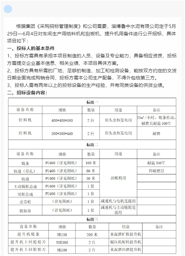 【招標(biāo)公告】魯中水泥