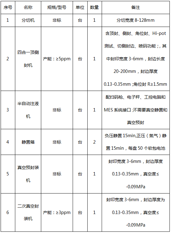 山東重山光電材料股份有限公司高比能鋰氟化碳電池中試線軟包電池部分設(shè)備采購(gòu)項(xiàng)目。