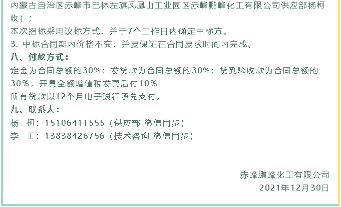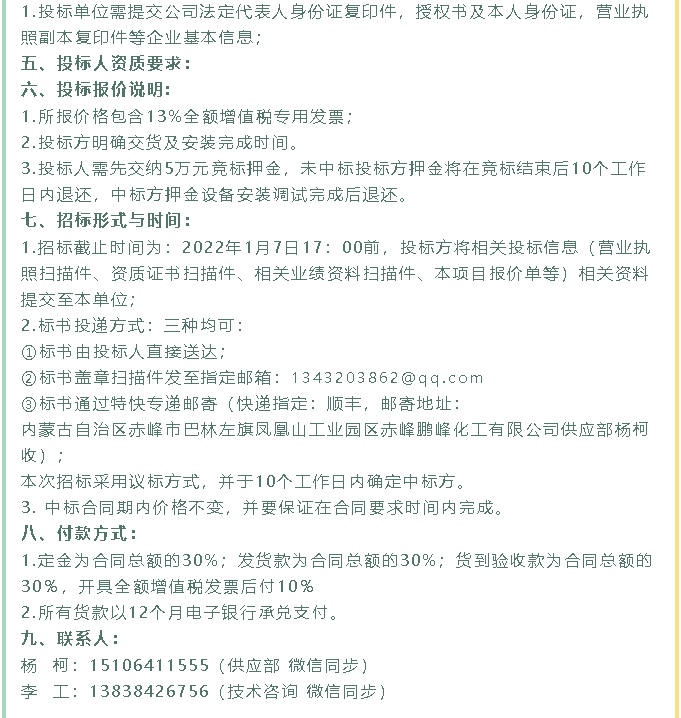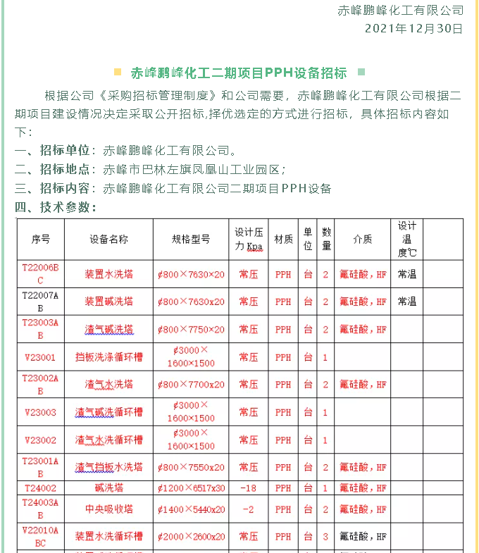 【招標(biāo)公告】鵬峰化工