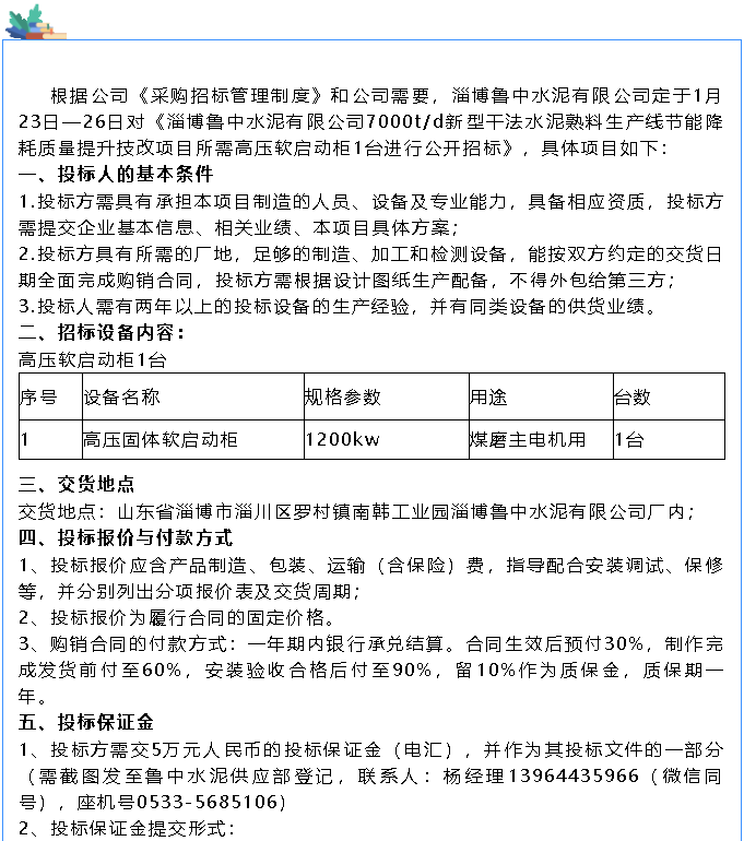 【招標(biāo)公告】魯中水泥