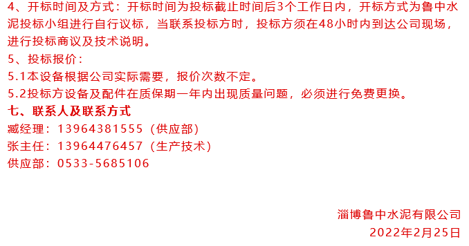 【招標(biāo)公告】魯中水泥