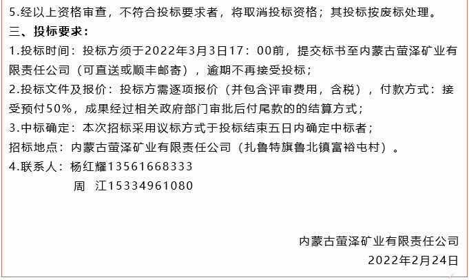 【招標(biāo)公告】螢澤礦業(yè)