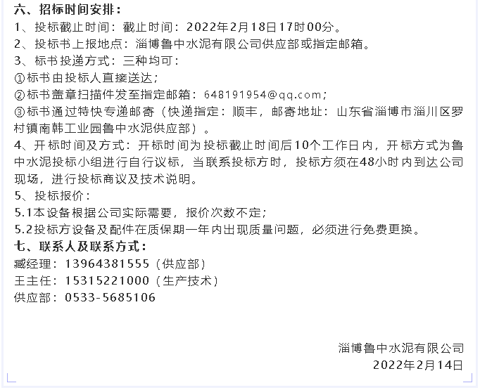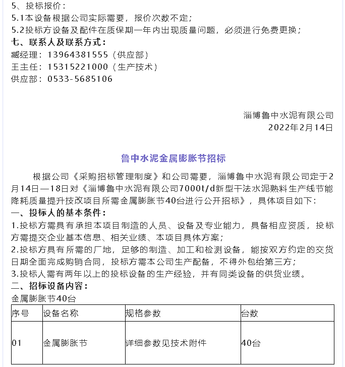 【招標公告】魯中水泥電液動閥門、金屬膨脹節(jié)招標