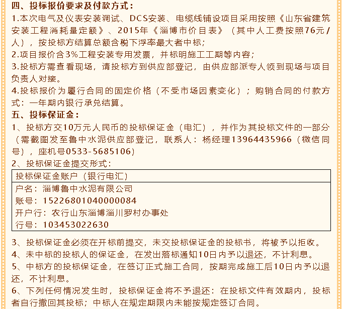 【招標公告】魯中水泥