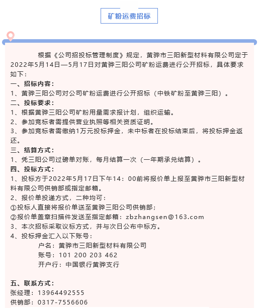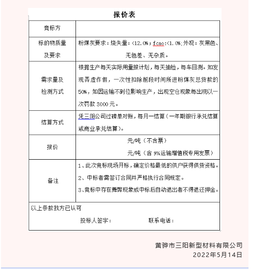 【招標(biāo)公告】黃驊三陽(yáng)粉煤灰、礦粉運(yùn)費(fèi)招標(biāo)