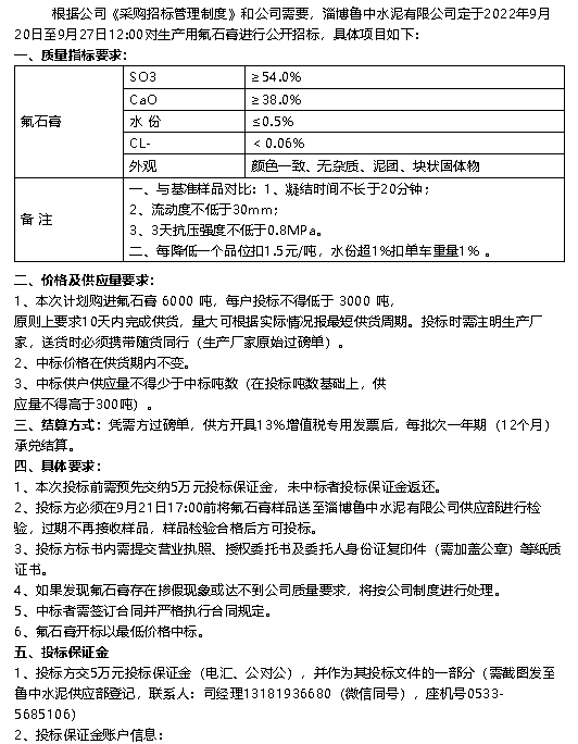 【招標公告】魯中水泥