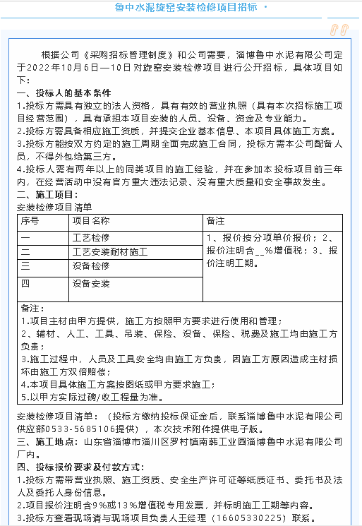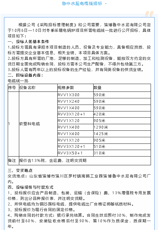 【招標(biāo)公告】魯蒙水泥環(huán)形皮帶秤、轉(zhuǎn)子秤招標(biāo),魯中水泥電纜線、旋窯安裝檢修項(xiàng)目招標(biāo)