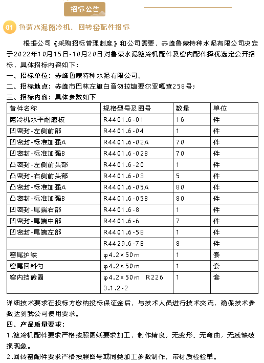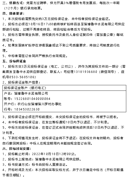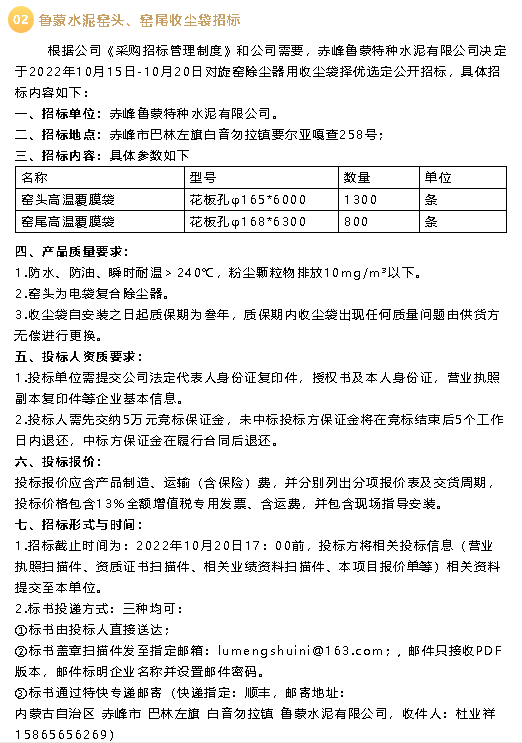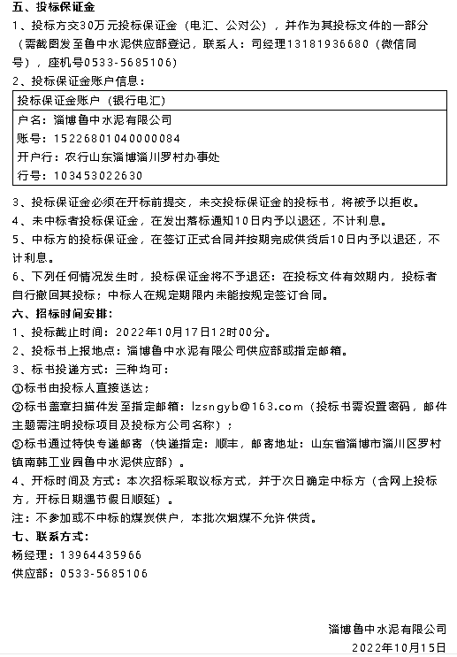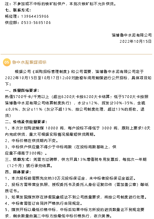 【招標(biāo)公告】魯蒙水泥、魯中水泥