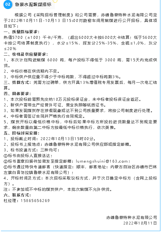 【招標(biāo)公告】重山集團(tuán)、魯蒙水泥、黃驊三陽、重山光電