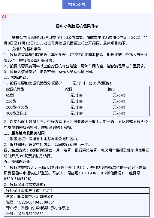 【招標(biāo)公告】魯中水泥、重山光電
