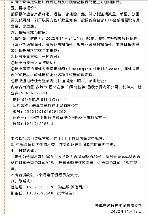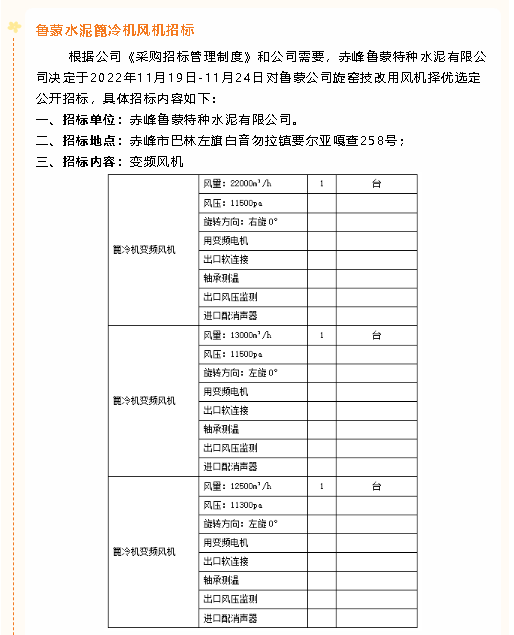 【招標公告】魯蒙水泥風機、鋼材、硅酸鈣板、納米隔熱板、錨固件、波紋補償器膨脹節(jié)、電動閥門招標
