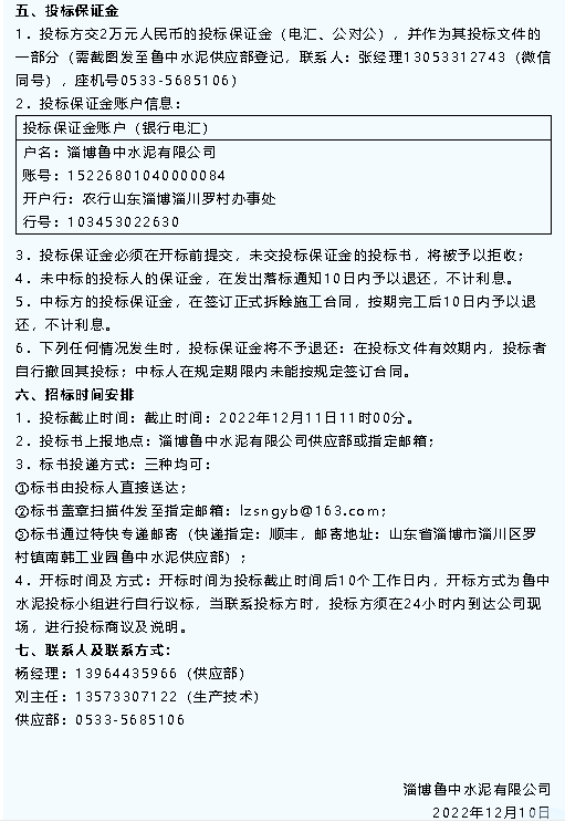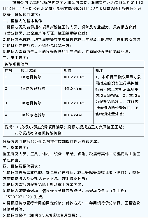 【招標公告】魯中水泥