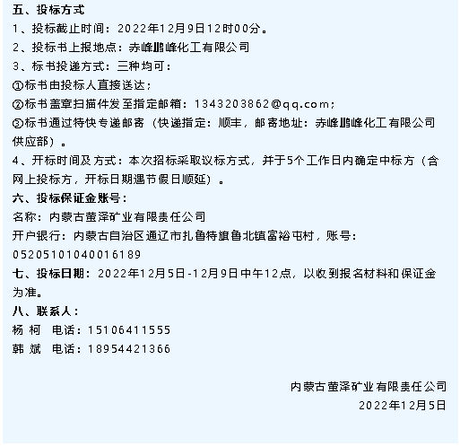 【招標(biāo)公告】鵬峰化工、螢澤礦業(yè)