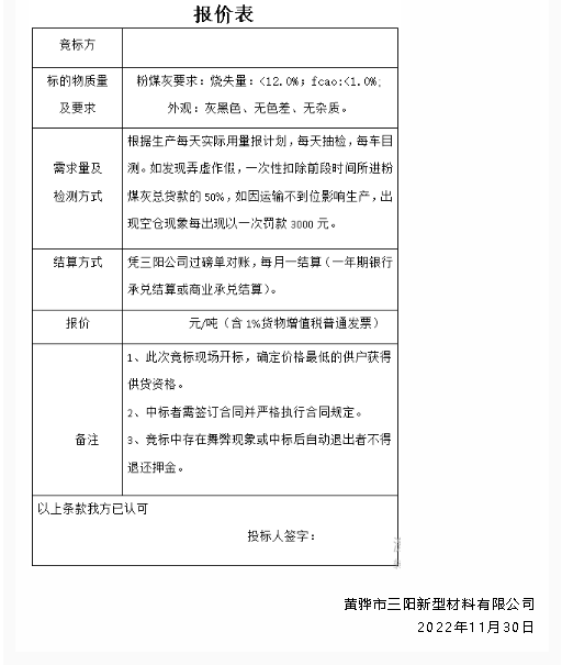 【招標(biāo)公告】黃驊三陽粉煤灰、爐渣招標(biāo)