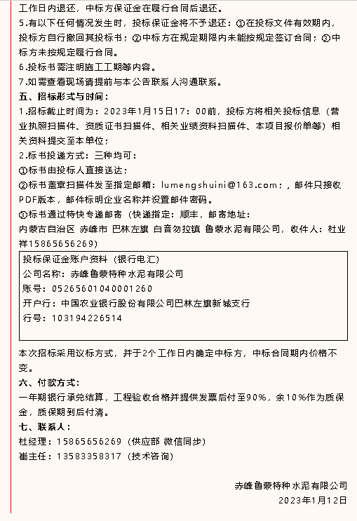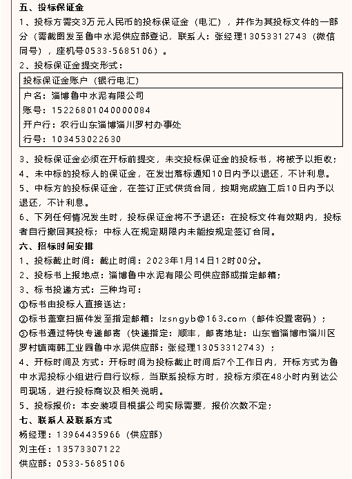 【招標(biāo)公告】魯中水泥、魯蒙水泥