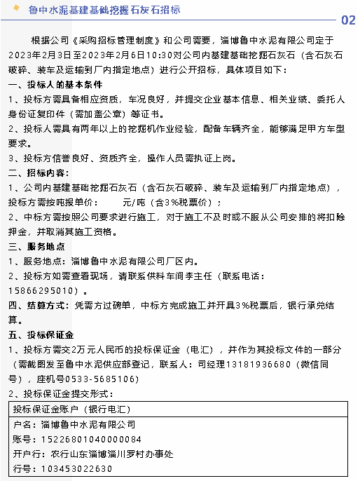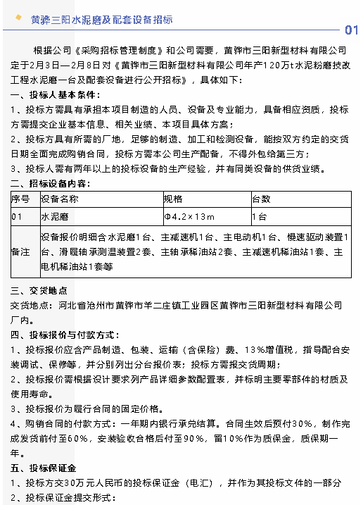 【招標(biāo)公告】黃驊三陽、魯中水泥