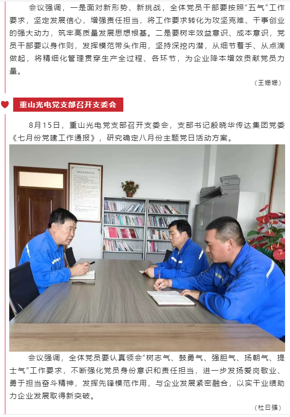 【黨建】集團機關(guān)黨支部、魯中水泥黨支部、重山光電黨支部分別召開支委會