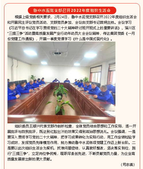 【黨建】魯中水泥黨支部召開(kāi)2022年度組織生活會(huì)、魯蒙水泥黨支部開(kāi)展主題黨日活動(dòng)