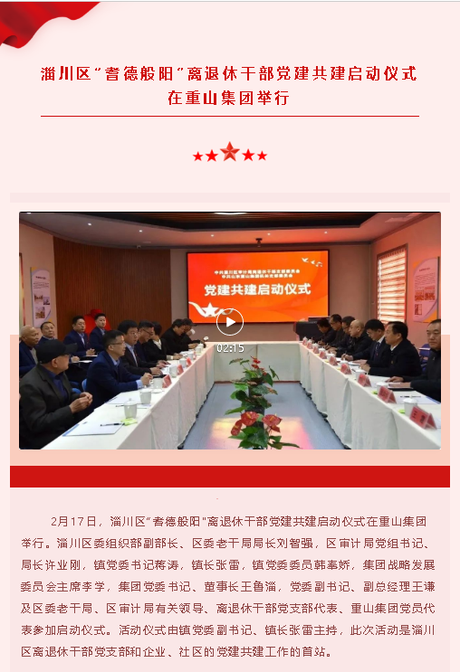 【頭條】淄川區(qū)“耆德般陽(yáng)”離退休干部黨建共建啟動(dòng)儀式在重山集團(tuán)舉行