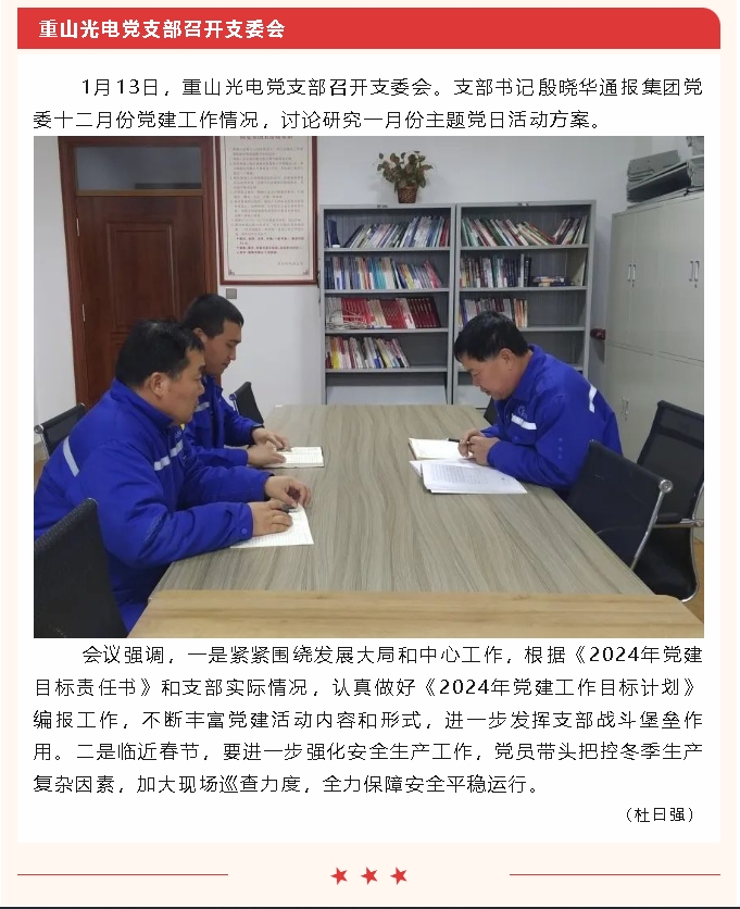 【黨建】黃驊三陽黨支部、重山光電黨支部召開支委會(huì)